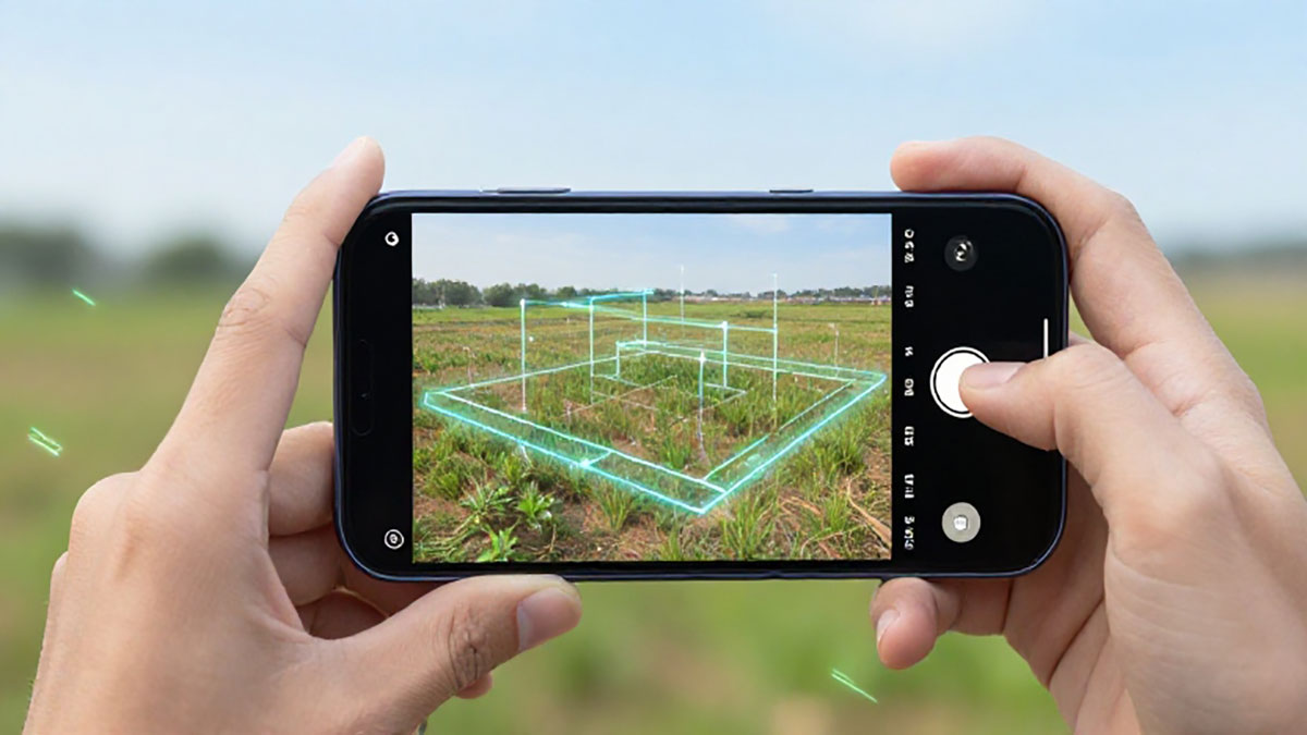 Teknologi AR yang terintegrasi dengan sensor gyroscope, accelerometer, dan depth sensor memungkinkan ponsel membaca jarak dan dimensi suatu area secara lebih akurat. Dengan mengarahkan kamera ke titik-titik sudut tanah, aplikasi dapat menghitung panjang sisi dan secara otomatis mengonversinya menjadi estimasi luas dalam satuan meter persegi.